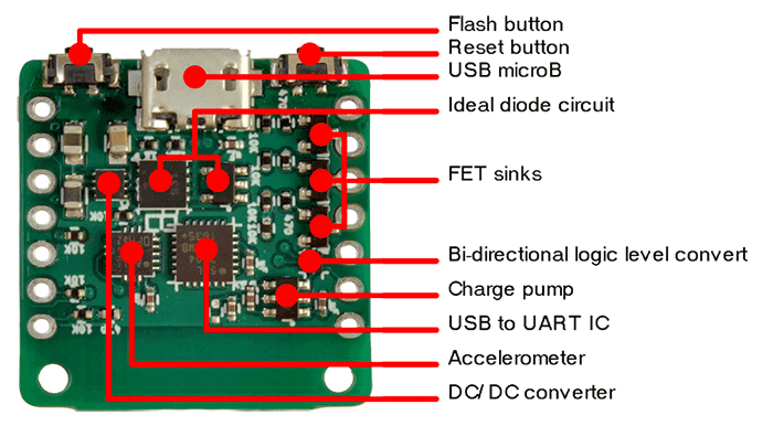Program and power your devices using the USB microB connector without any additional components