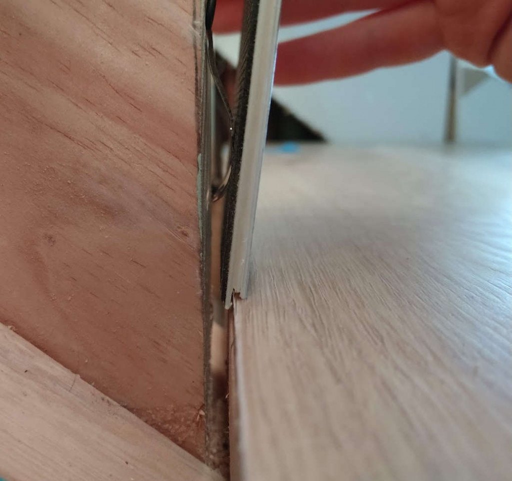Springin Published 2021-07-27 at 1035 × 971 in Custom stair nose pt 2 WITH LEDs!!!! The leaf springs push the lip onto the edge and hold it in place.