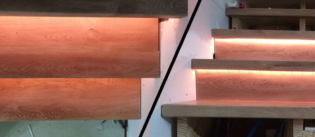StairsUpFwd Published 2021-07-29 at 1344 × 588 in Custom stair nose pt 2 WITH LEDs!!!! View from above and below